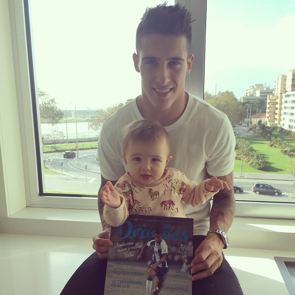 O avançado do FC Porto, de 23 anos, partilhou com os fãs no Facebook uma foto com a filha, Carlota, que nasceu no passado mês de março. Christian Tello posou também com a revista oficial do clube azul e branco “Dragões”. “Espero que gostem da entrevista que me fizeram para a revista ‘Dragões'”, escreveu na legenda.
