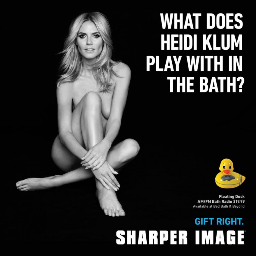 Aos 41 anos, Heidi Klum tirou a roupa para a campanha Gift Right, do site de compras Sharper Image, que incentiva a troca de presentes nas épocas de festas, como o Natal.