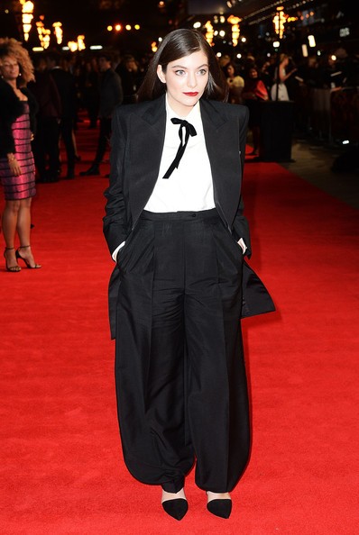 O elenco desfilou na passadeira vermelha, mas a atriz, que é a protagonista da saga dando vida à heroina Katniss, centrou as atenções.
