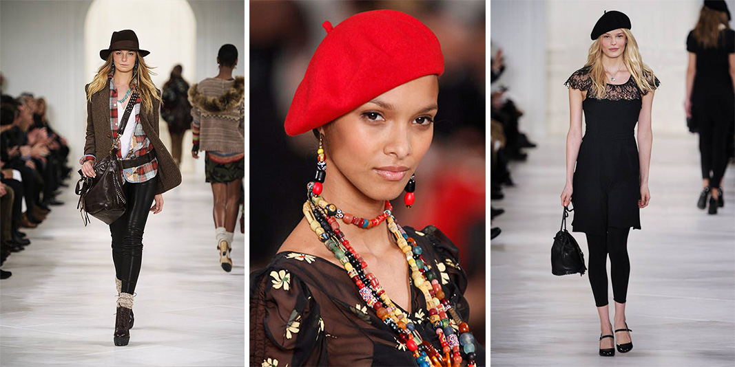 Adornos para a cabeça estão cada vez mais na moda e voltam a fazer parte do guarda-roupa contemporâneo. Nos desfiles do outono/inverno 2015 os chapeús reaparecem, bem como as boinas, os gorros e os capuzes. Uma tendência vista nos desfiles: Ralph Lauren, Alexis Mabille, Saint Laurent, Lanvin e Dolce & Gabanna.