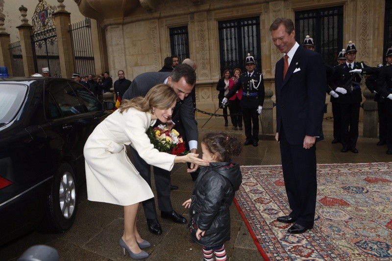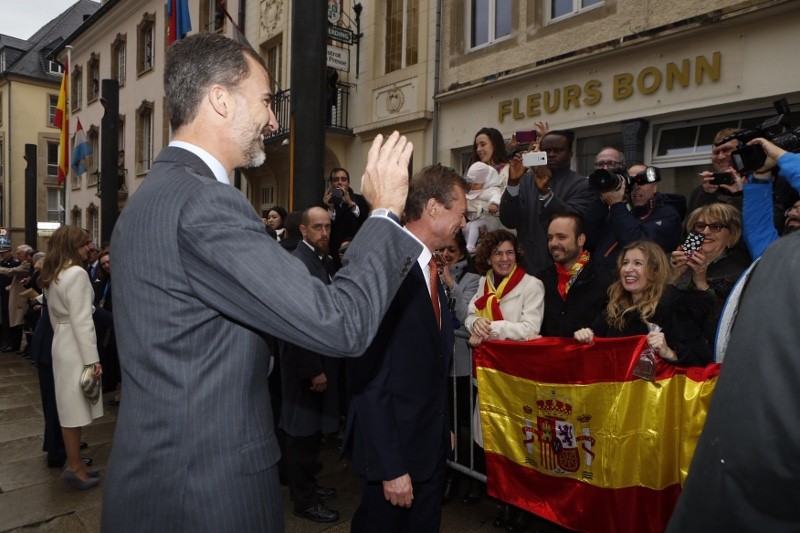 À chegada, reis espanhóis foram recebidos pelo príncipe herdeiro, Guillaume, que curiosamente hoje festeja o 33º aniversário. Depois Felipe e Letizia seguiram para o Palacio Ducal, onde os esperava o Grão-Duque Henrique. Felipe e Letizia tiveram uma receção calorosa e a rainha recebeu um ramo de flores de uma menina. Centenas de pessoas encheram as ruas do Grão-ducado para ver os reis de perto.