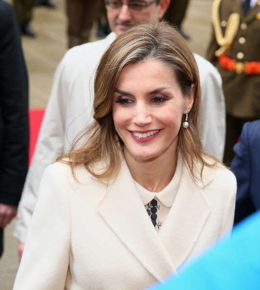 Para a ocasião Letizia optou por um vestido marfim com estampado floral, de Felipe Varela, que já usou em outras ocasiões.