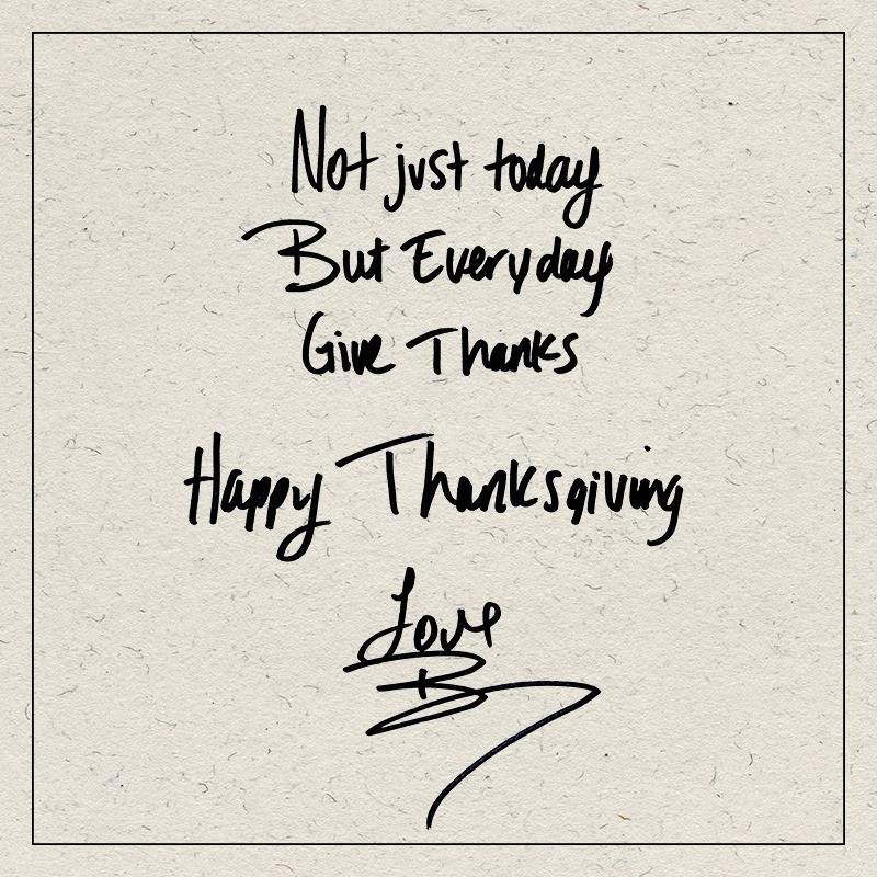 Beyoncé deixou uma mensagem nas redes sociais- “Não apenas num dias. Mas todos os dias. Dar Graças. Feliz Dia de Ação de Graças”, lê-se na mensagem.