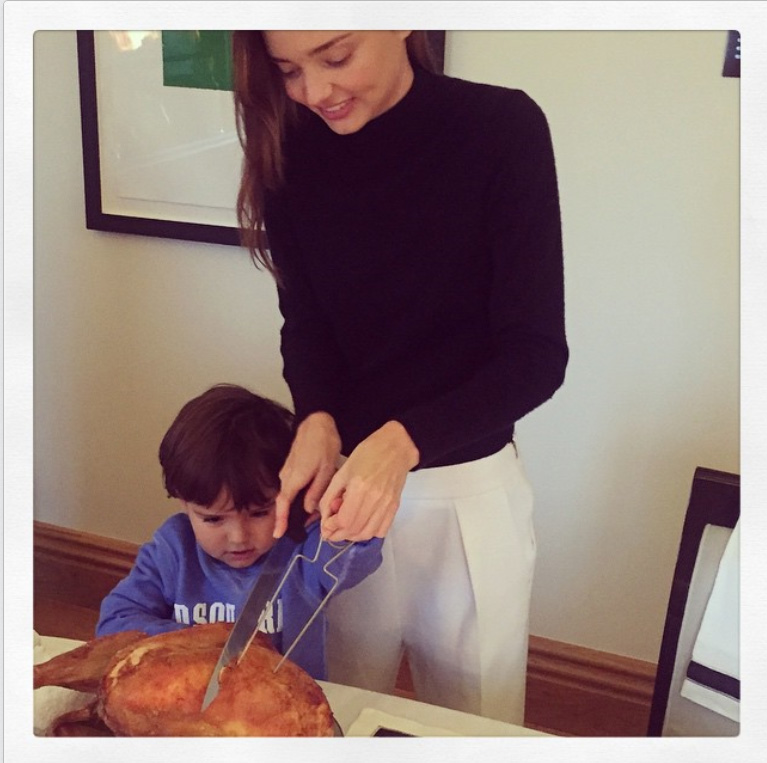 Miranda Kerr partilhou uma foto a cortar peru com o filho
