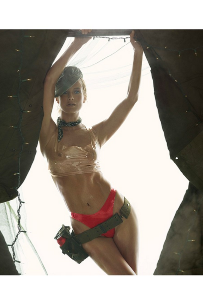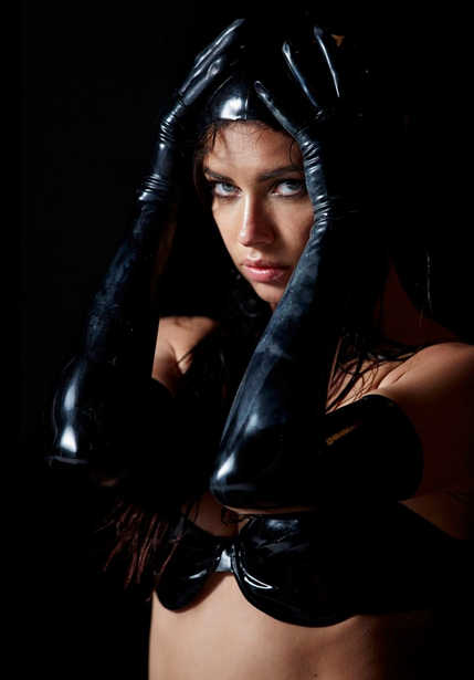 “Nós usamos o látex para dar para às imagens uma pitada de moda… para complementar a beleza das modelos – e uma pitada de humor também”, explicou Carine Roitfeld, responsável pelo styling.