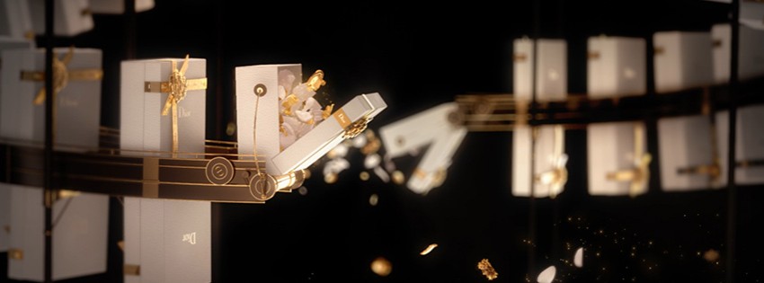Esmaltes descem por uma montanha russa e os batons Rouge Dior deslizam pelas correntes douradas, prontos para serem entregues debaixo da sua árvore.