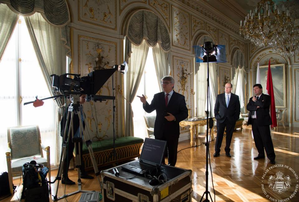 A Casa Real do Mónaco partilhou imagens da gravação da mensagem no Facebook.