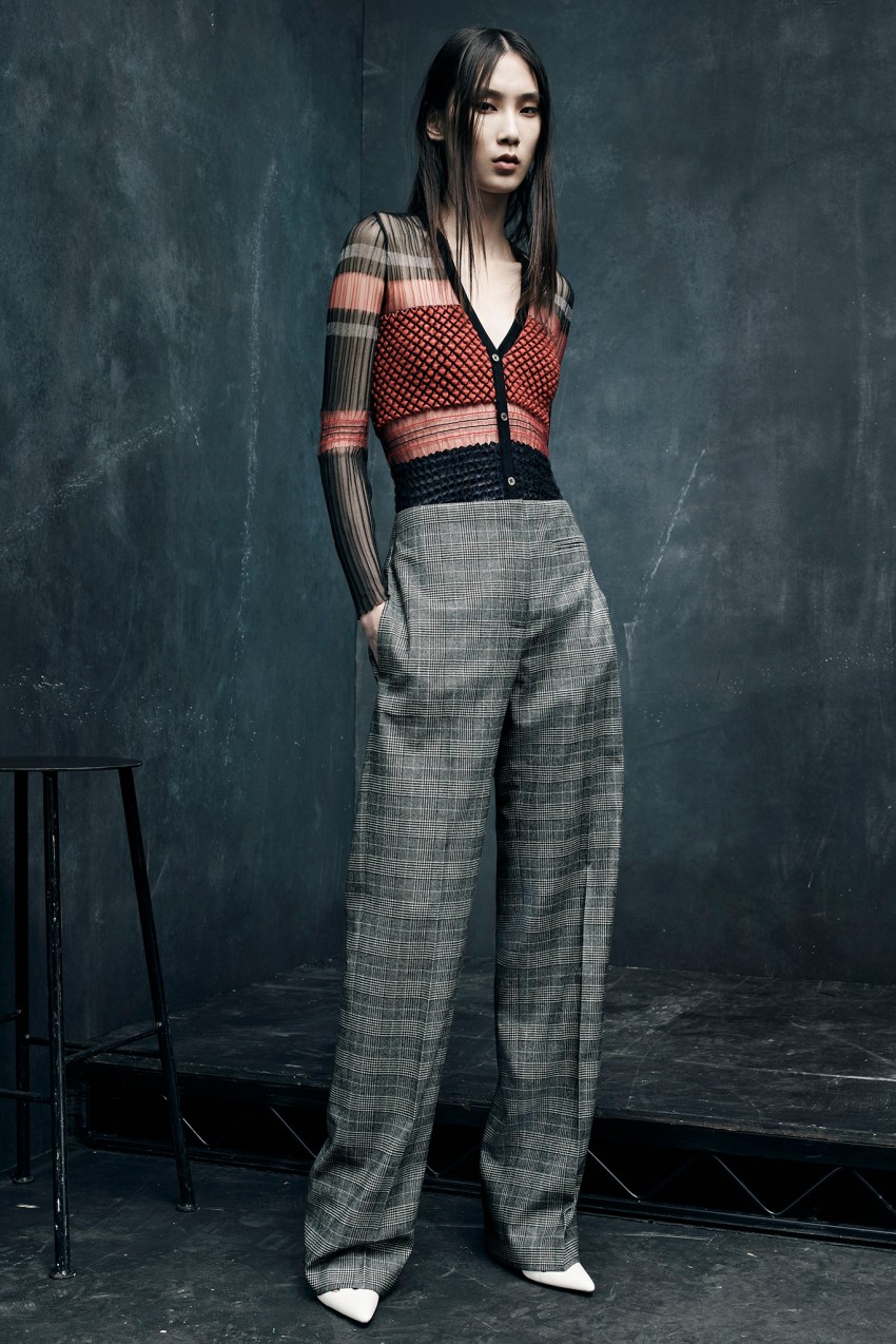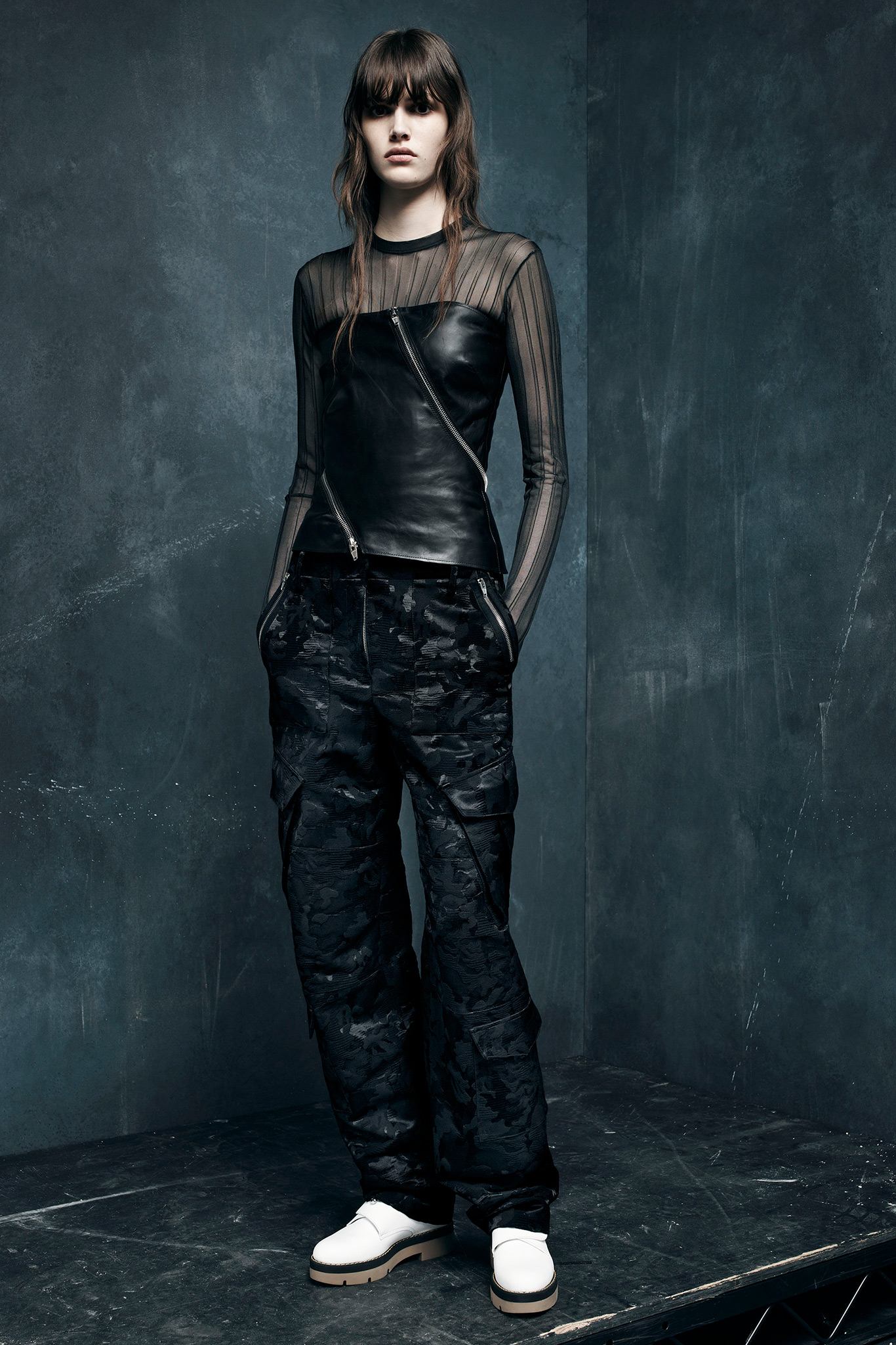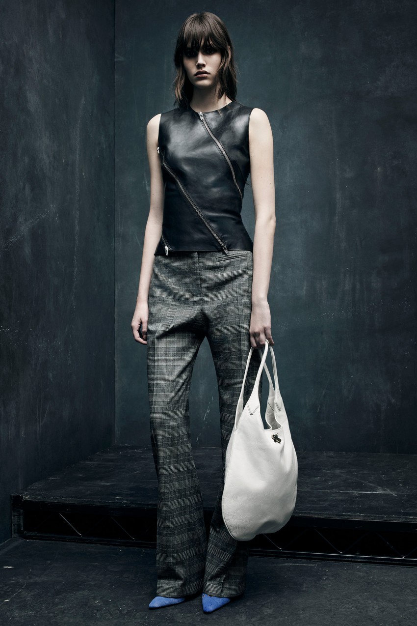 Alexander Wang apresenta as propostas para a pré-coleção de outono do próximo ano. Esta linha do criador tem um leve toque masculino, através das calças largas, que garantem mais uma vez o conforto, e casacos com corte mais amplo.