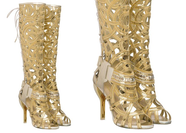 O criador desenvolveu um par de sandálias douradas bordadas à mão com cristais Swarovski, e uma versão semelhante em cano alto, que estão à venda no seu site.