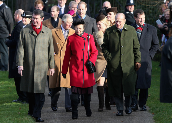 Além dos duques de Cambridge também se juntaram à rainha Isabel o seu marido, o príncipe Philip, o príncipe Harry e outros membros da família. Este ano também a família de Kate participou nas festividades. Os irmãos da duquesa, James e Pippa, e os pais, Carole e Michael, também estiveram no serviço religioso.