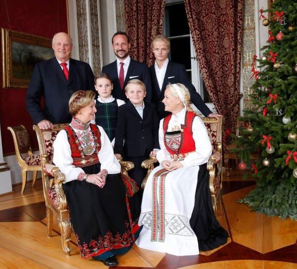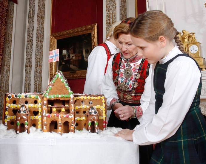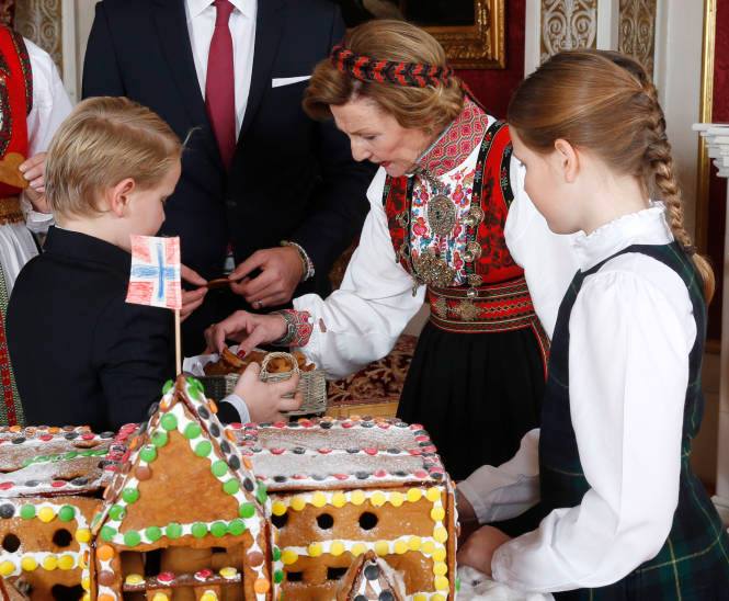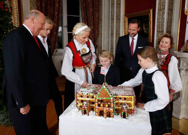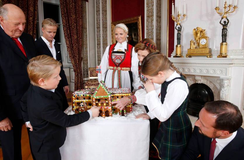 Para a foto a rainha e a nora vestiram-se com os trajes tradicionais da Noruega e toda a família se deliciou com bolachas de gengibre. A sessão fotográfica contou, também, com a presença do filho mais velho de Mette-Marit, Marius.