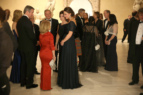 No mesmo dia os duques estiveram ainda no evento de artistas britânicos que estão a viver na Big Apple. O dia terminou com um jantar de gala, com o objetivo de angariação de fundos para a universidade St. Andrews. Neste evento, a duquesa voltou a encantar com a sua elegância. Kate elegeu um vestido de uma das suas estilistas preferidas, Jenny Packham.