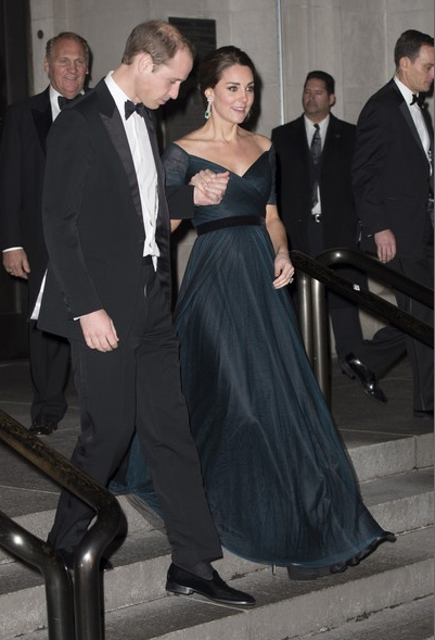 No mesmo dia os duques estiveram ainda no evento de artistas britânicos que estão a viver na Big Apple. O dia terminou com um jantar de gala, com o objetivo de angariação de fundos para a universidade St. Andrews. Neste evento, a duquesa voltou a encantar com a sua elegância. Kate elegeu um vestido de uma das suas estilistas preferidas, Jenny Packham.
