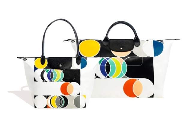 Sarah Morris reinterpretou o saco Le Pliage da Longchamp, no âmbito das celebrações do 20º aniversário do modelo.