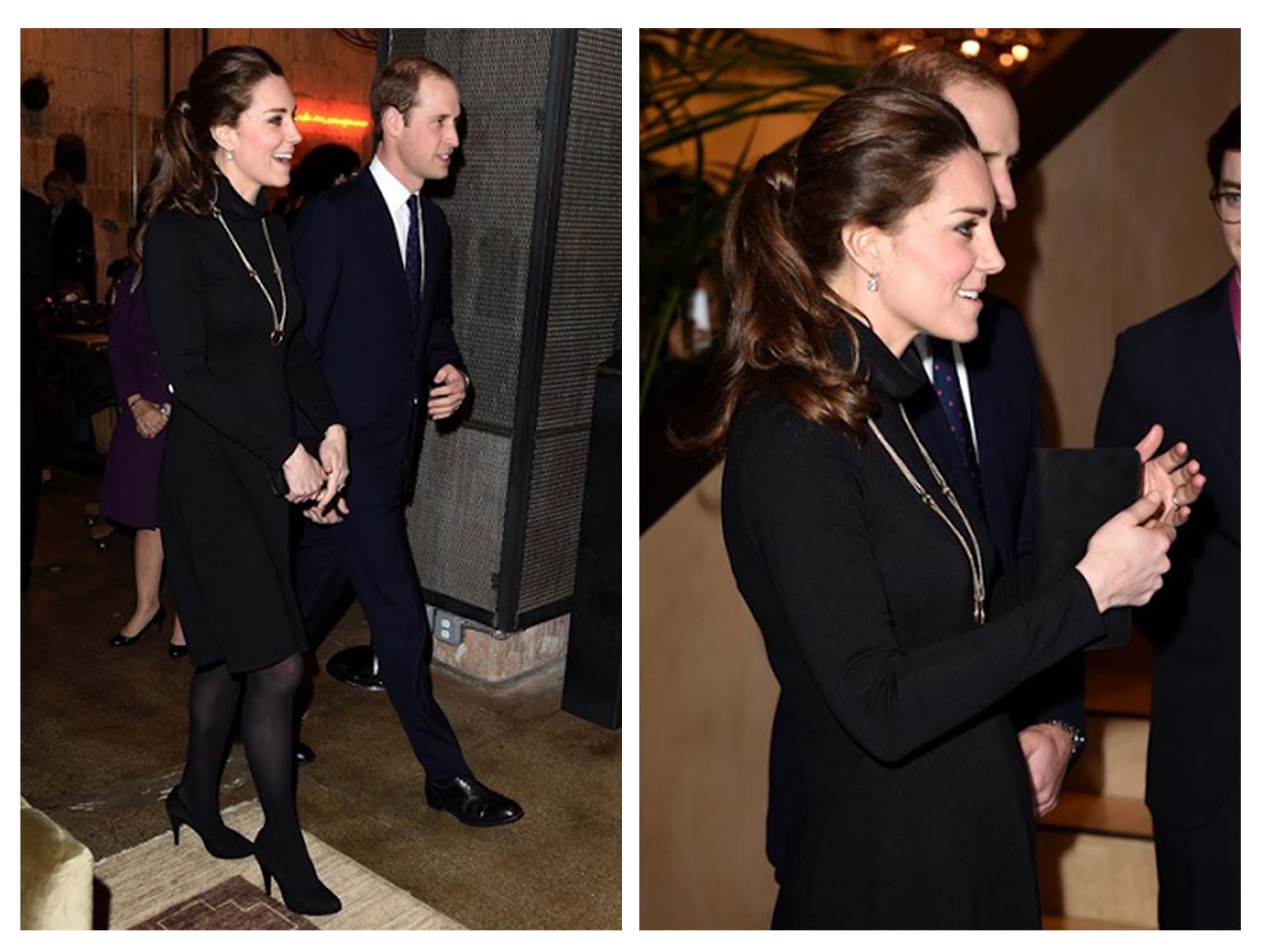 Além disso, Kate elegeu ainda duas peças da Seraphine e usou um vestido preto e um casaco da marca.