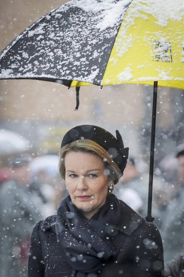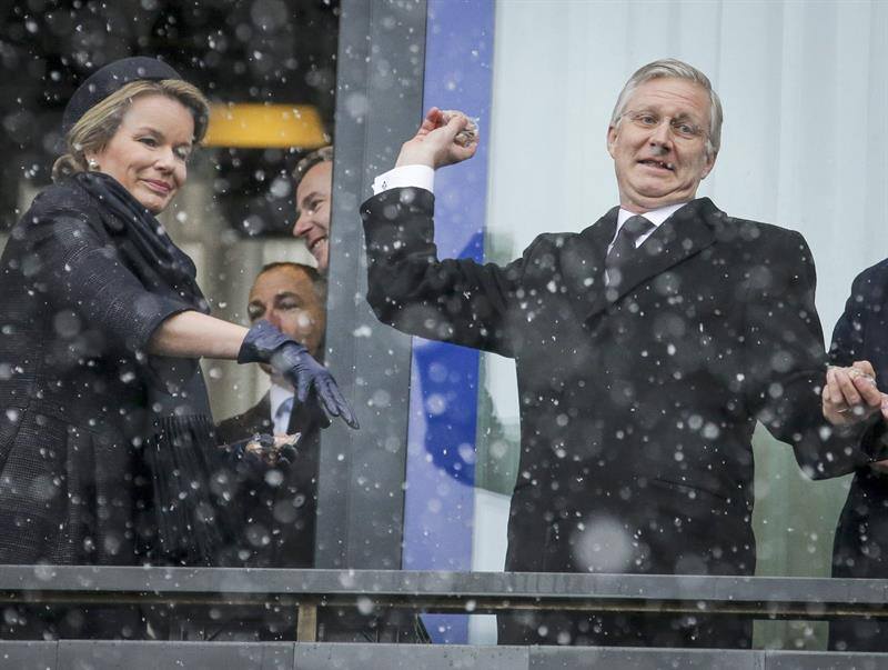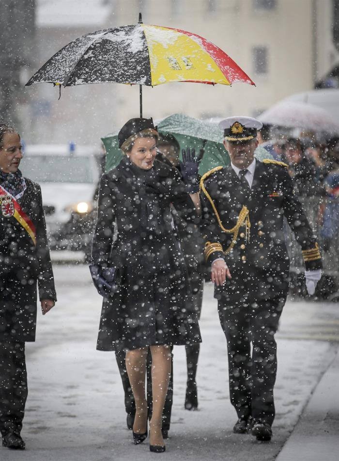Apesar da neve que caia, os reis estiveram nas ruas a confraternizar com os cidadãos. Mathilde e Philippe estiveram ainda na varanda da câmara municipal da cidade e cumpriram a tradição de atirar nozes ao público.