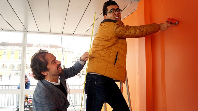 Mas, durante o período que estiveram no Terreiro do Paço a ajudar na decoração do estúdio a boa disposição também marcou presença.