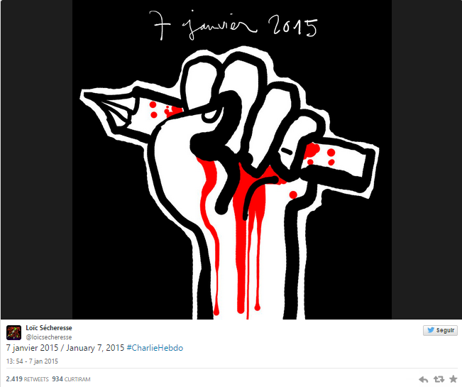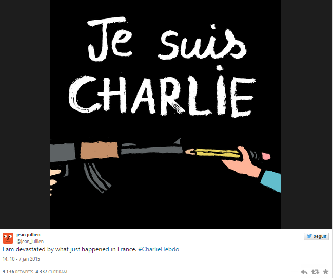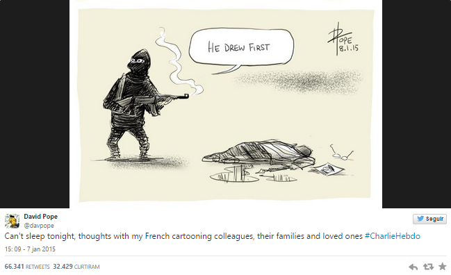 Muitos ilustradores responderam com cartoons ao ataque terrorista nas instalações do jornal satírico “Charlie Hebdo”, numa homenagem aos colegas de profissão que perderam a vida na quarta-feira, 7 de janeiro.