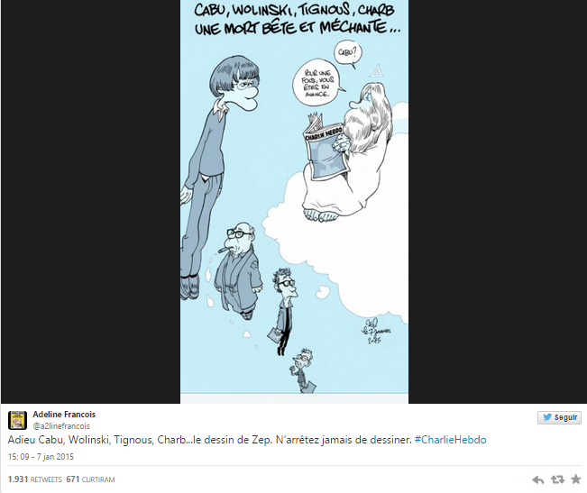Entre as vítimas mortais estão Charb, diretor do jornal, Tignous, Cabu, considerado um dos maiores cartoonistas de França, e o veterano Wolinski.