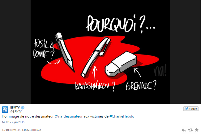 As reações vêm de todos os cantos do mundo, por cartoonistas, mais ou menos conhecidos, que optaram por responder com arte ao atentado em Paris, que deixou a nação francesa de luto.