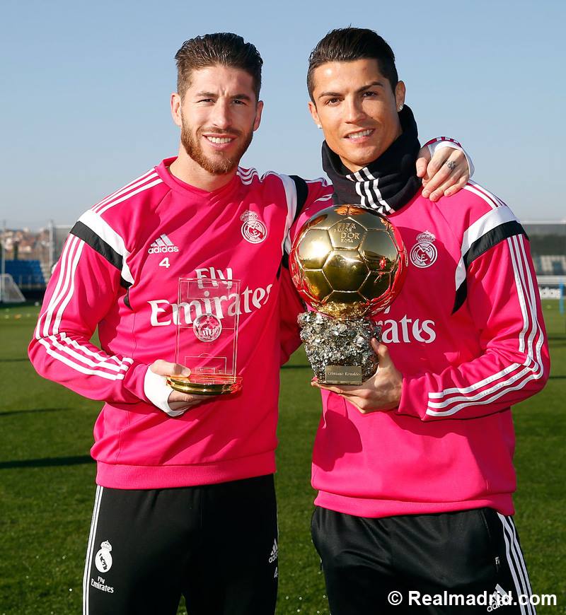 Tal como aconteceu no ano passado, Cristiano Ronaldo levou a Bola de Ouro para o primeiro treino após ser novamente eleito como Melhor Jogador do Mundo.