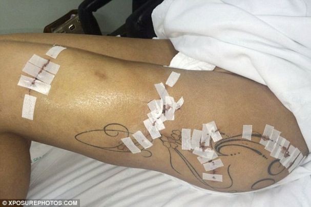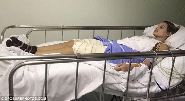 A apresentadora ficou conhecida por ter participado no concurso brasileiro Miss Bumbum em 2012 e nas fotografias vê-se a jovem deitada numa cama e com feridas ainda abertas após a cirurgia que teve algumas complicações.