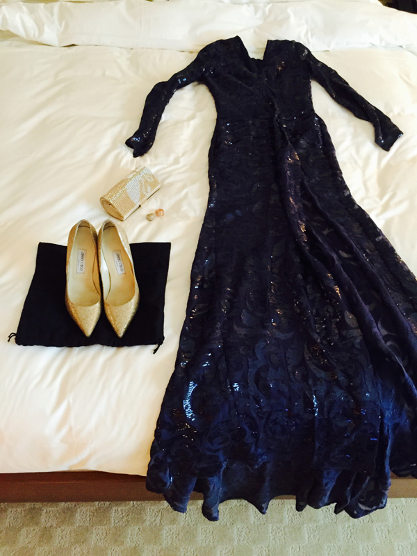 Pilar partilhou várias imagens dos preparativos no quarto de hotel de Zurique. A apresentadora elegeu um vestido azul da estilista Carla Ruiz, que conjugou com uns sapatos dourados Jimmy Choo e uma clutch da mesma cor da Swarovski. Já o craque desfilou ao lado da sua amada com um smoking Carolina Herrera.