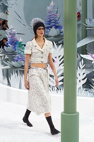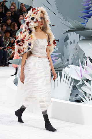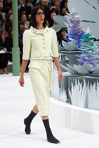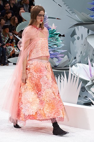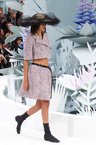 A marca decorou o Grand Palais de flores e árvores de papel para apresentar as propostas para as estações mais quente do ano.