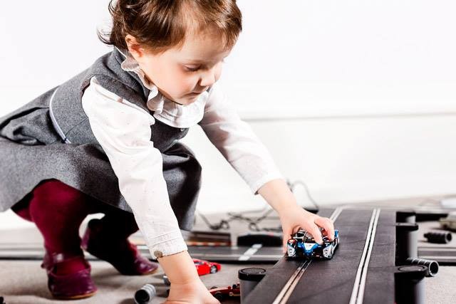 Nas fotos a pequena princesa surge sorridente e a brincar com uma pista de carros.