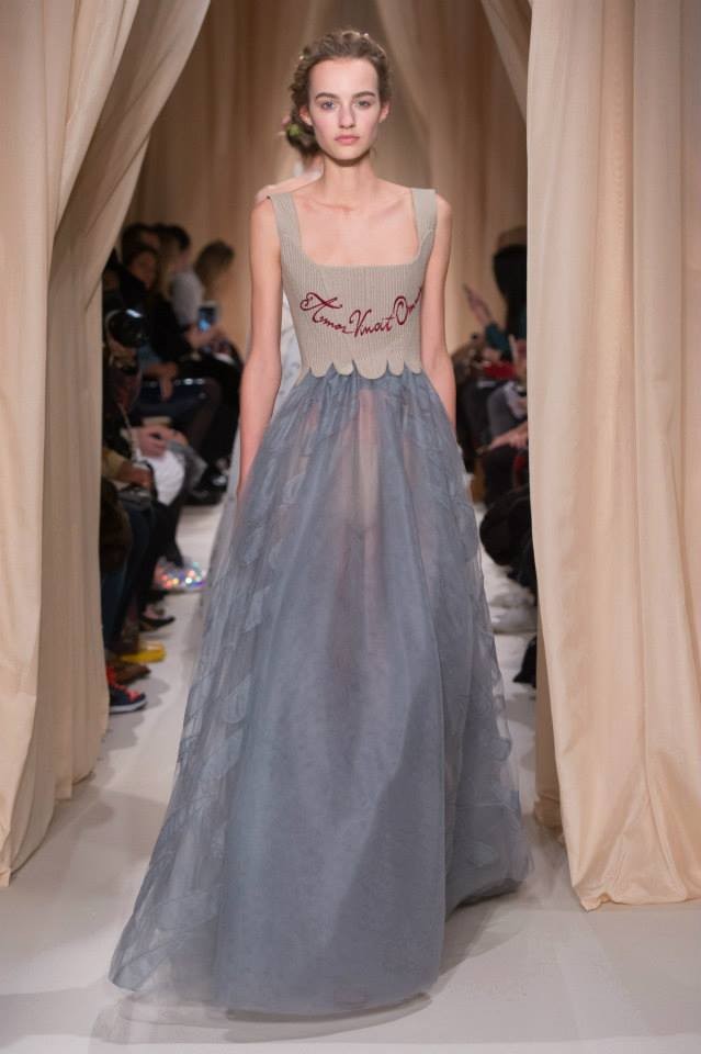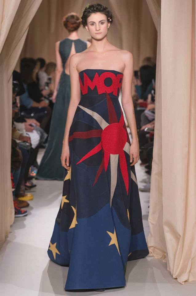 Os textos do “Inferno” de Dante, frases de Shakespeare, a música pop italiana, mas principalmente a obra de Marc Chagall foi a inspiração dos estilistas para criar uma coleção que fala de amor. Os vestidos bordados, com evidentes influências renascentistas e medievais, foram as peças que dominaram na passerelle.