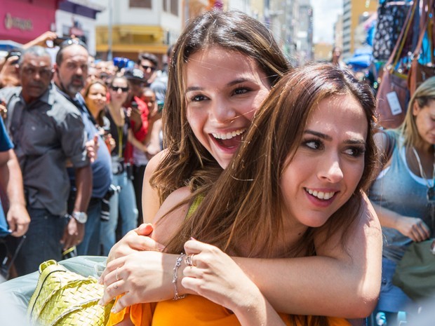 As atrizes estiveram a gravar na rua 25 de março de São Paulo e causaram sensação. Apesar da segurança, muitos trausentes quiseram tirar fotos com as duas estrelas, que se mostraram muito animadas.