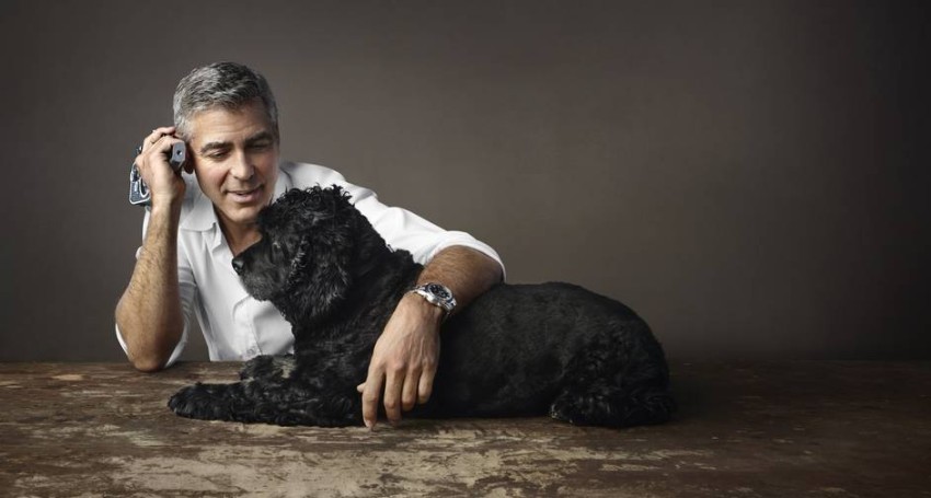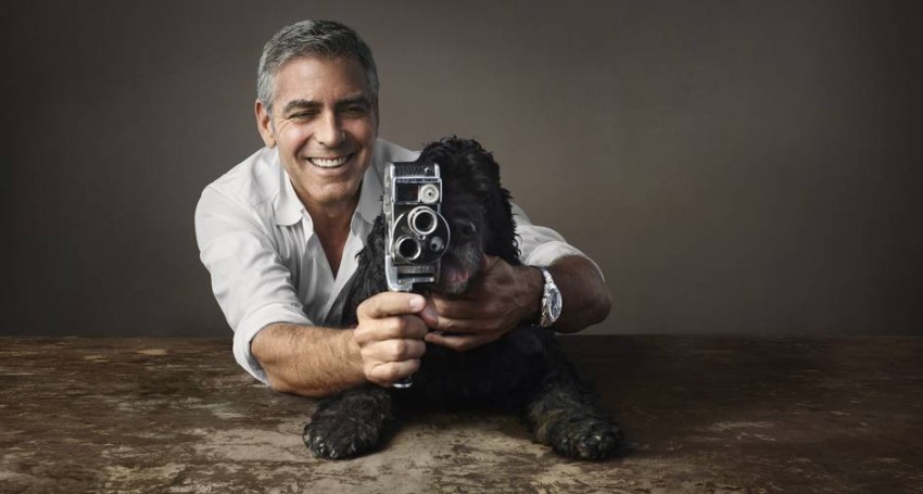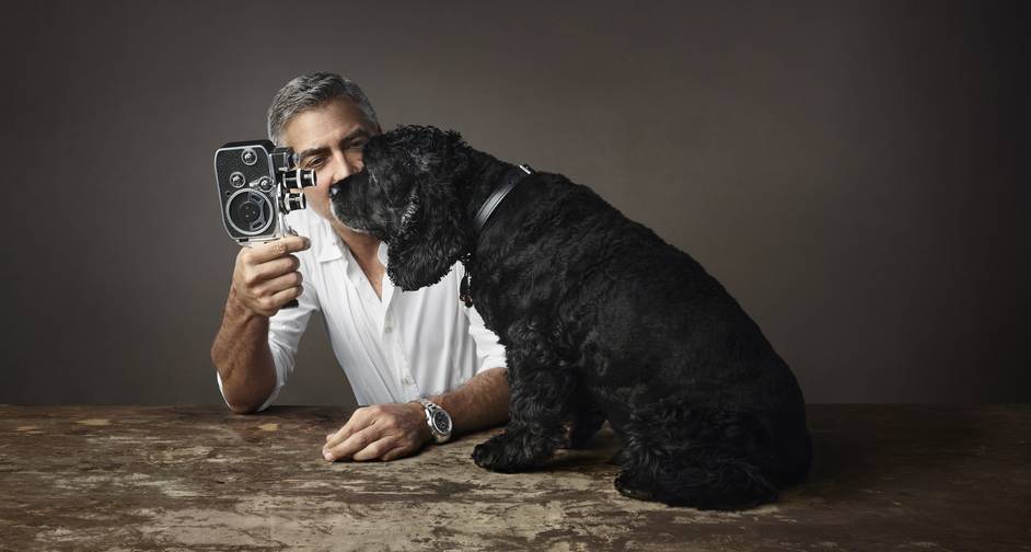 O ator teve uma companhia especial na sessão fotográfica da campanha para a marca de relógios Omega. George Clooney, de 53 anos, posou com o seu cão, Einstein.