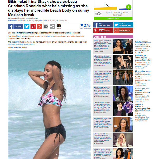 Se a manequim ficou de “coração partido” com o fim do namoro com Cristiano Ronaldo não se nota. Irina Shayk foi “apanhada” nas praias do México, para onde viajou para divulgar a marca Avon. Após o trabalho, a beldade aproveitou o tempo livre para usufruir do calor de Cancún.