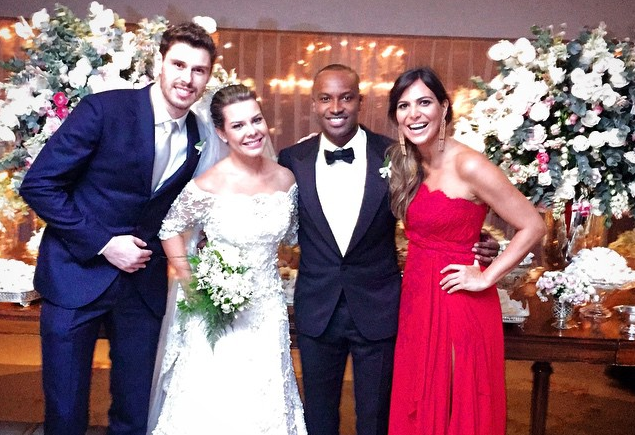 A atriz brasileira subiu ao altar com um vestido assinado por Martha Medeiros, enquanto o cantor e compositor usou um fato Tom Ford.