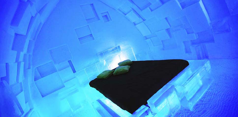 O hotel está aberto durante apenas três meses por ano (de janeiro a março) e, depois, é construído para receber mais hóspedes no inverno seguinte. No bar, as bebidas são servidas em taças feitas de gelo, na decoração não faltam esculturas, candelabros… tudo em gelo. Além disso, até tem uma capela.