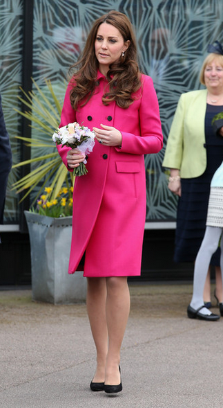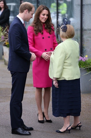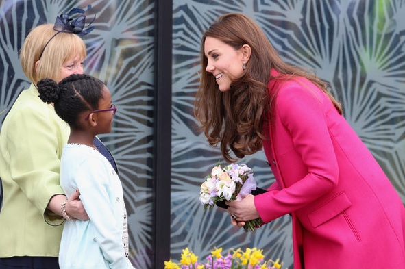 Para a ocasião, a duquesa elegeu um casaco fucsia da Mulberry, que já tinha usado durante a viagem oficial a Nova Iorque.
