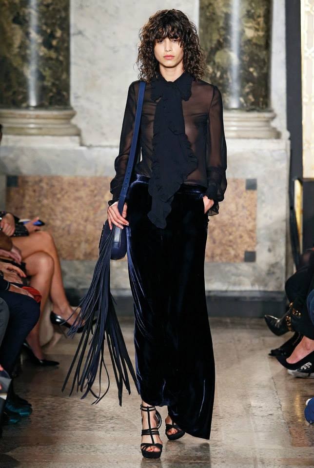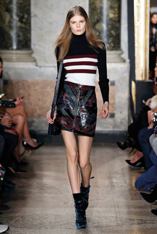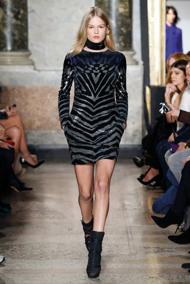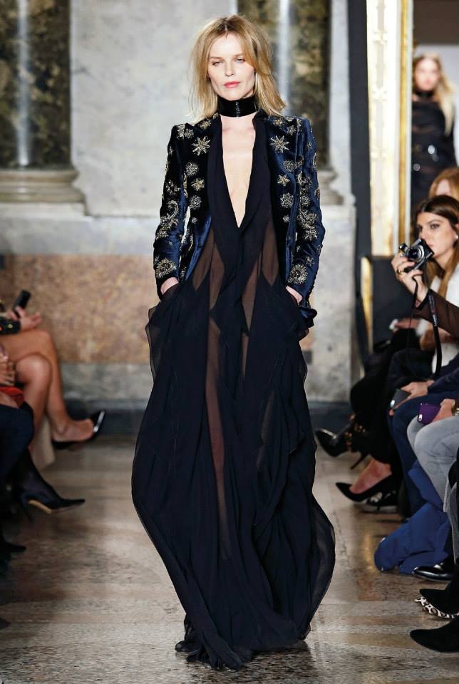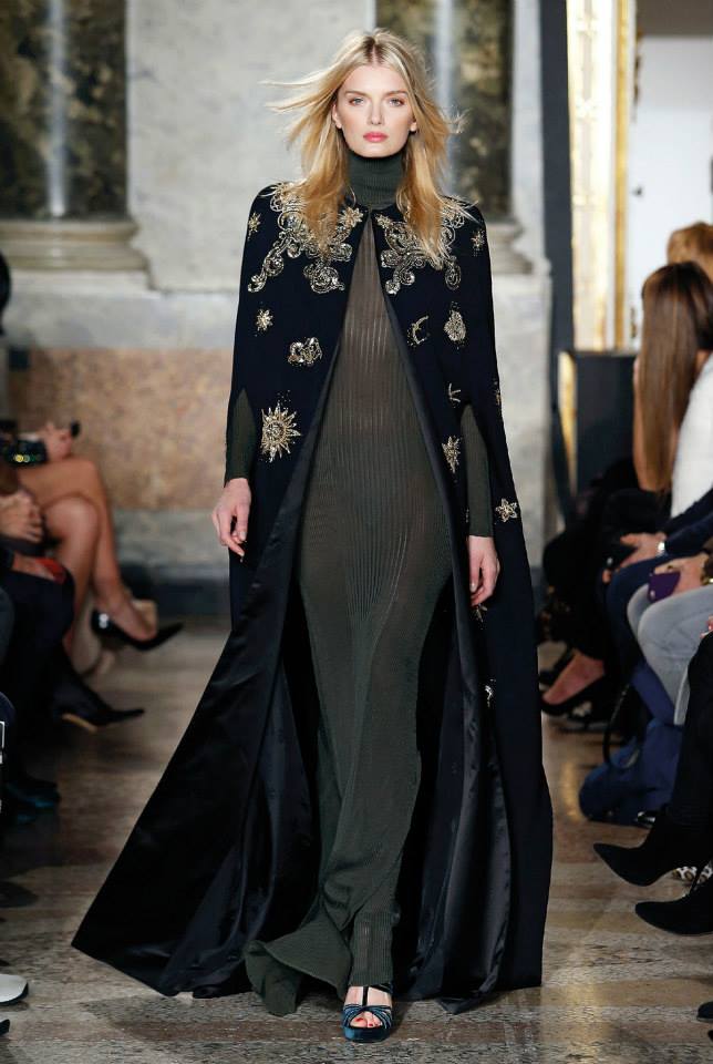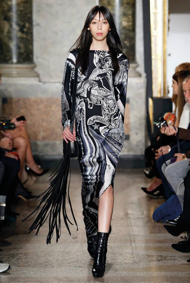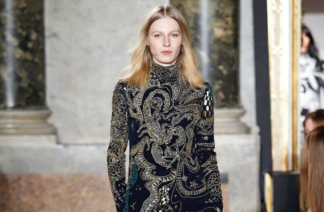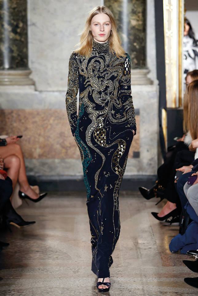 Na passerelle desfilaram peças com bordado à constelação e estampados de Escorpião, Leão, Capricórnio… O diretor criativo da maison, Peter Dundas, também se deixou influenciar pelos anos 70, apostando em casacos de peles, calças amplas e nas franjas.