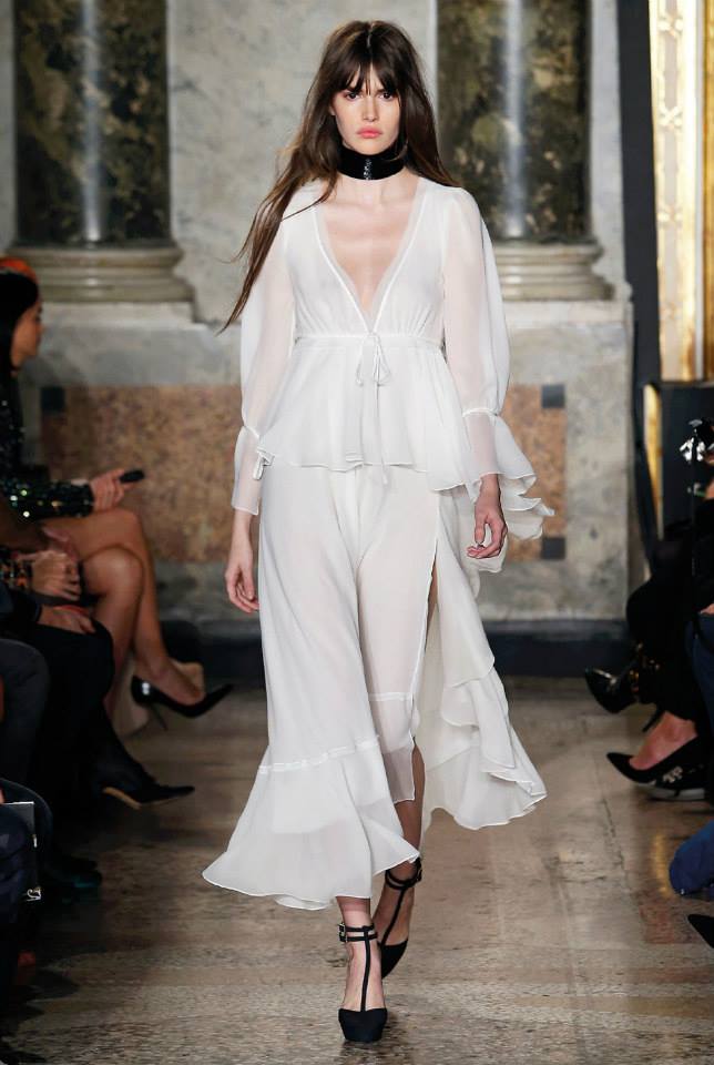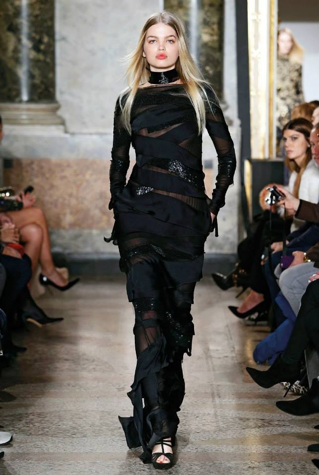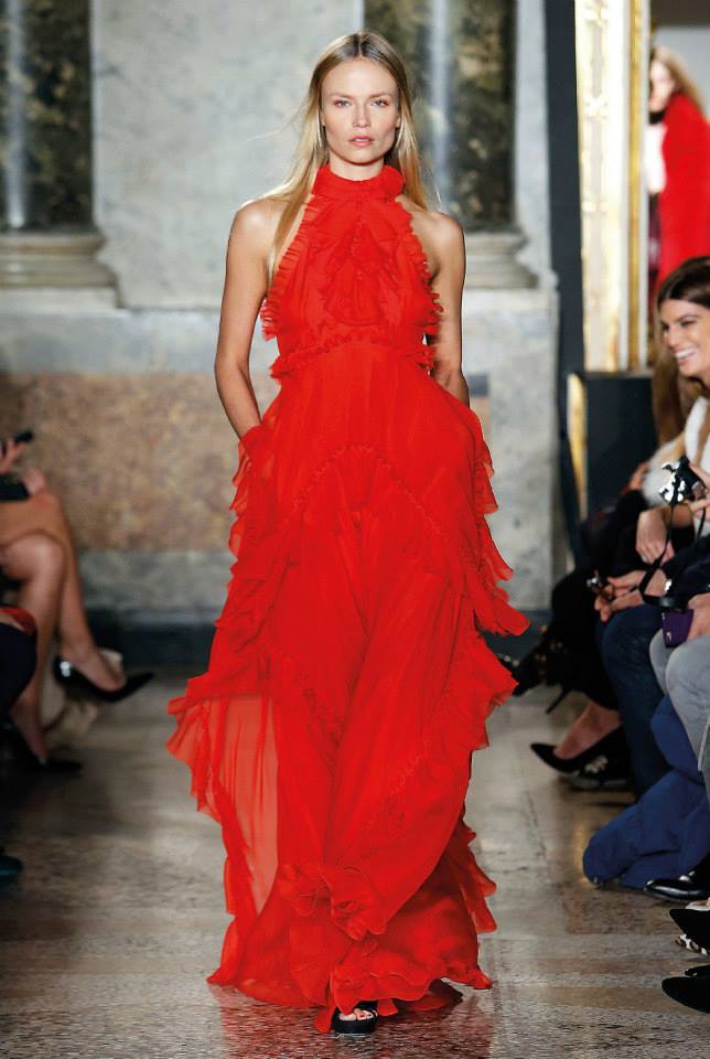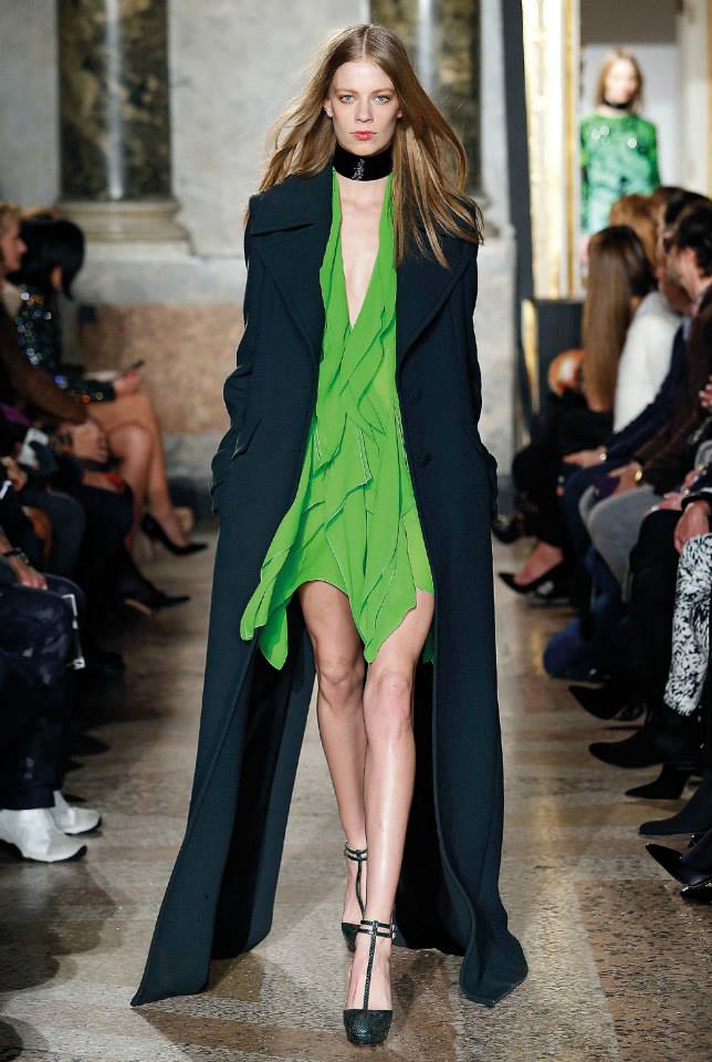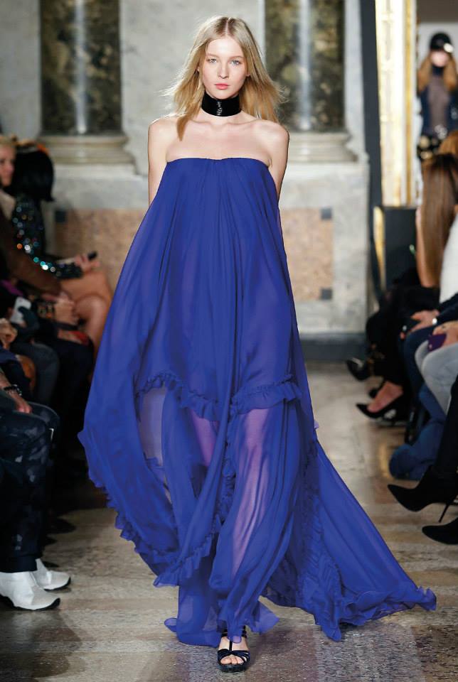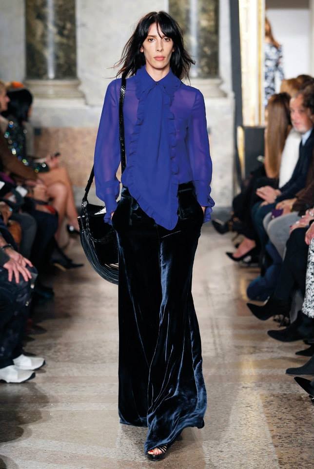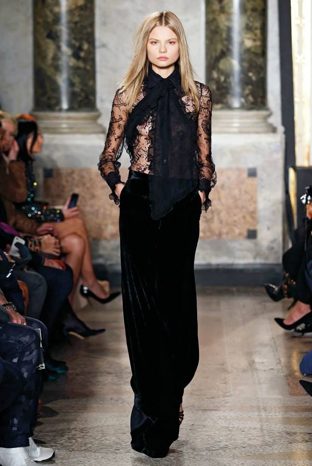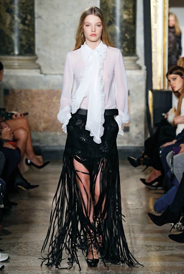 Na passerelle desfilaram peças com bordado à constelação e estampados de Escorpião, Leão, Capricórnio… O diretor criativo da maison, Peter Dundas, também se deixou influenciar pelos anos 70, apostando em casacos de peles, calças amplas e nas franjas.