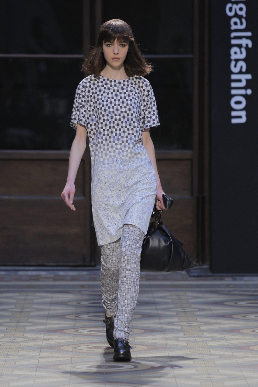 “Esta coleção é preparada para o corpo feminino como o piano é preparado para a música do John Cage. Silhueta esguia e fluída contraposta com volumes XL, como o silêncio entre as notas que dão mais intensidade à música. Uma mulher serena e confiante num espaço denso”, descreveu o estilista.