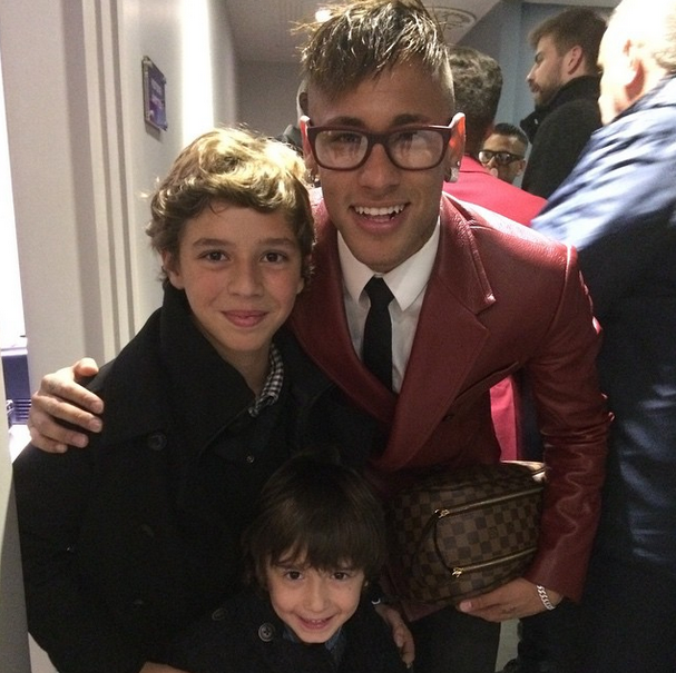 No final do jogo, Martim e Rodrigo tiveram a oportunidade de conhecer Messi e Neymar, o que tornou a noite ainda mais inesquecível.