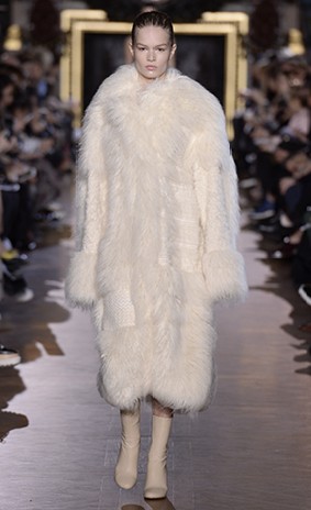 Para a coleção de outono/inverno 2015/16, apresentada na semana da moda de Paris, estilista britânica apostou na pele falsa e peças de alfaiataria.