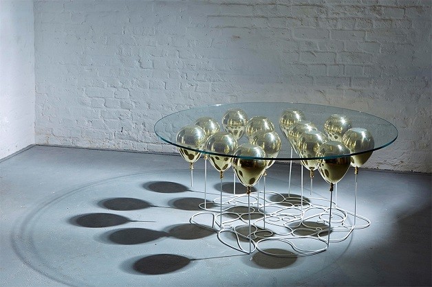 O móvel foi desenhado pela Duffy London, que pretende vender apenas 25 unidades, nas cores vermelho, prata, dourado ou misto (prata com dourado). Os balões da mesa, batizada de “The UP Balloon Coffee Table”, são feitos com hastes de aço e compósito de metal, de forma a criar uma base firme.