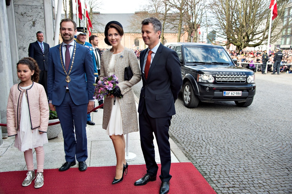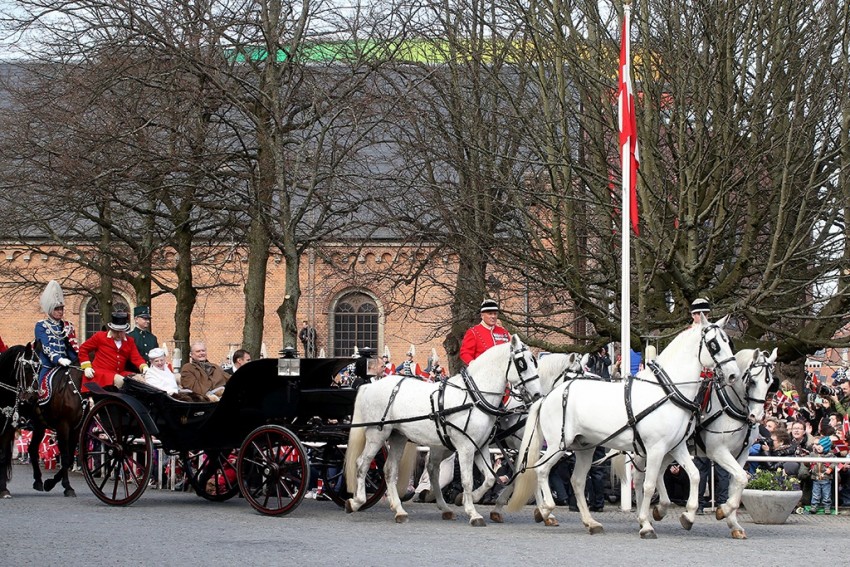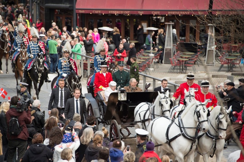 A rainha chegou de carruagem à câmara municipal de Aarhus, ao lado do marido, Henrique, onde se deu início a uma série de eventos para festejar o aniversário.