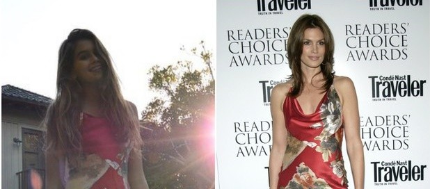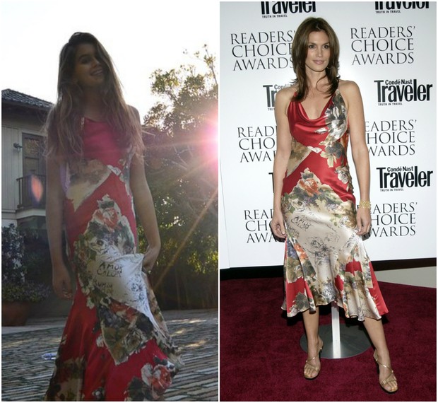 Kaia Gerber, a filha, de 13 anos, de Cindy Crawford, está cada vez mais parecida com a mãe e agora também segue o seu estilo. A adolescente posou para o irmão, Presley, com um vestido longo estampado de Roberto Cavalli e publicou a imagem no Instagram. “Vintage”, escreveu na legenda.