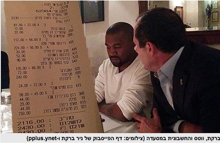 A imagem foi divulgada pelo gabinete de Barkat e foi captada durante uma visita do mediático casal a Israel, onde baptizaram a filha, North.