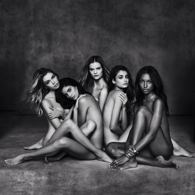 Cinco delas – Kate Grigorieva, Taylor Hill, Stella Maxwell, Sara Sampaio e Jasmine Tookes – posaram sem roupa e a imagem foi divulgada pela marca de lingerie nas redes sociais.