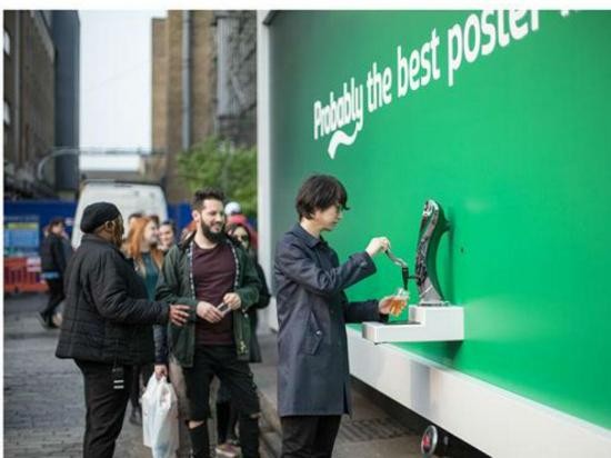 Há um outdoor, com o slogan “provavelmente o melhor poster do mundo”, que está a fazer furor em frente da cervejaria Truman, em Shoreditch, em Londres. A razão não podia ser mais evidente: todos aqueles que passam podem servir-se de um copo de cerveja Calsberg.