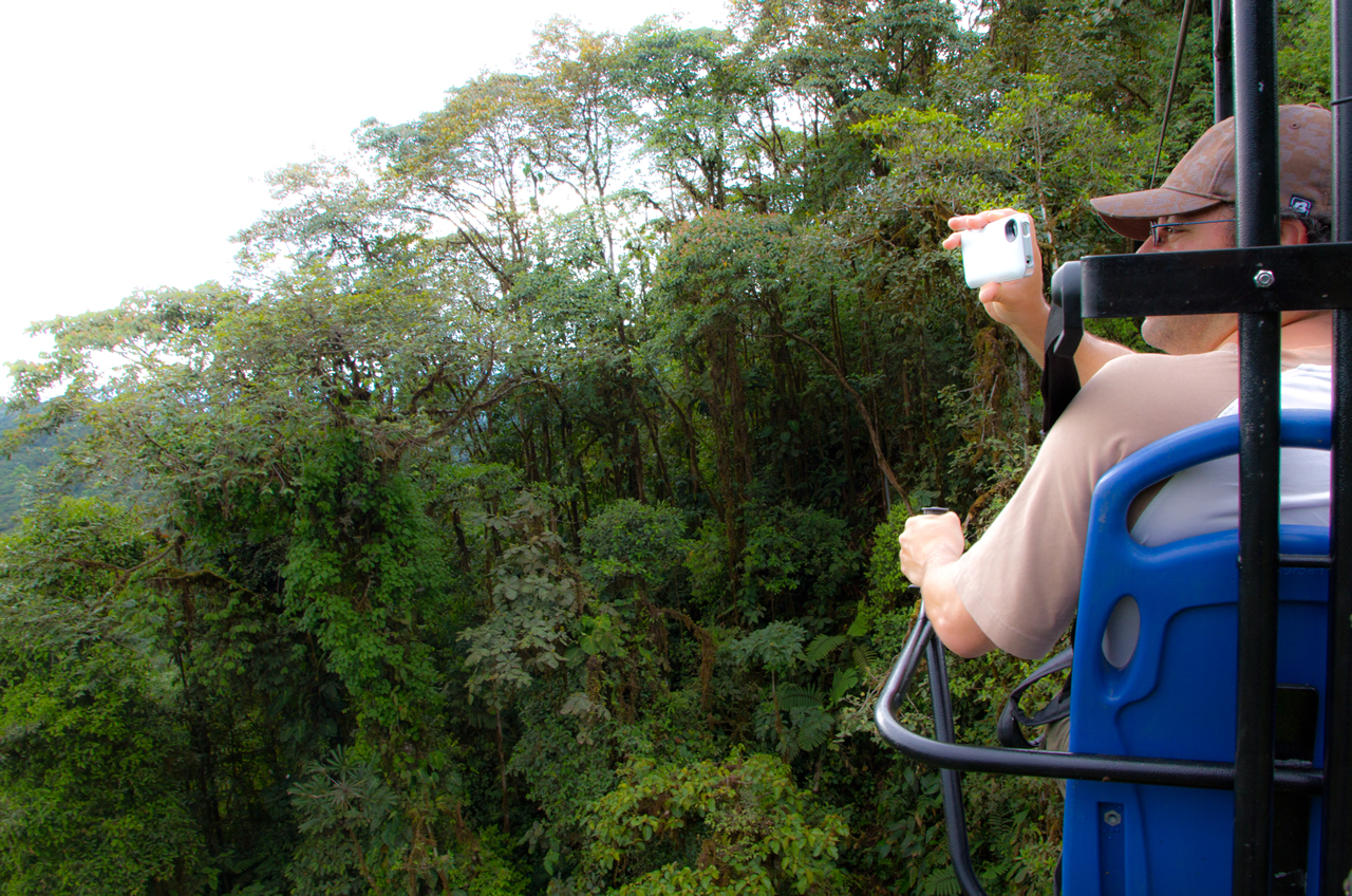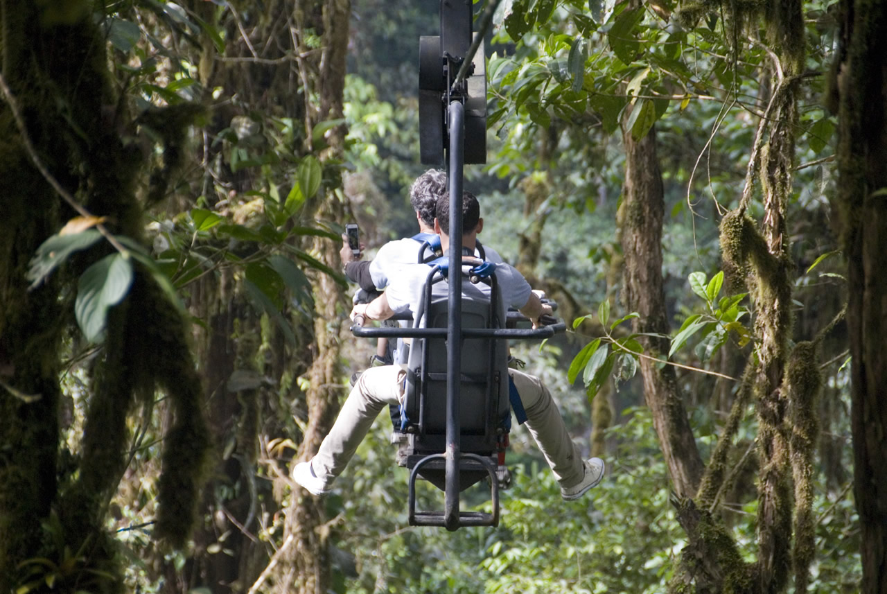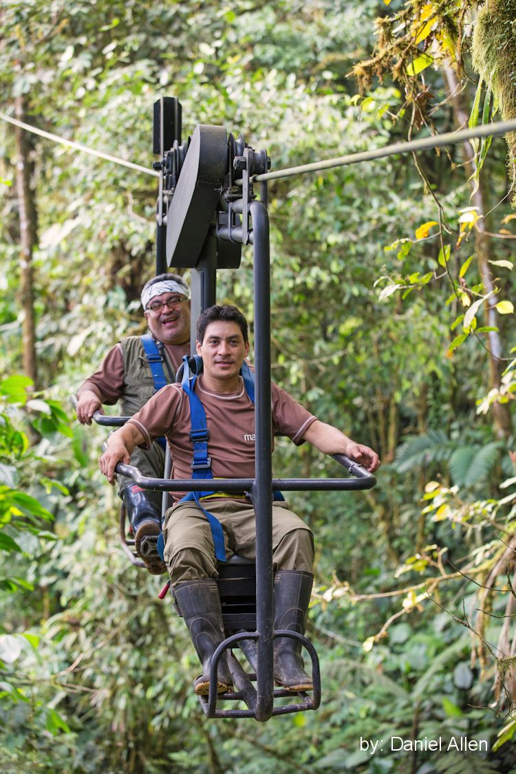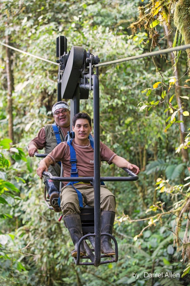 No meio da protegida floresta tropical de 3.212 hectares, a Reserva de Biodiversidade Mashpi, no Equador, a Sky Bike fica suspensa a cerca de 60 metros do chão através de um cabo, permitindo aos turistas atravessar a floresta entre dois pontos e proporcionando vistas únicas.