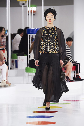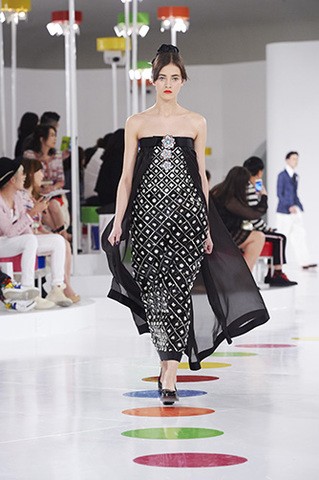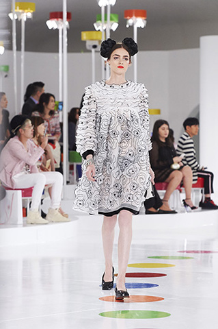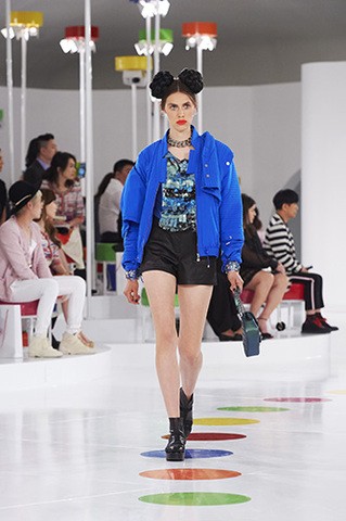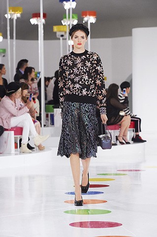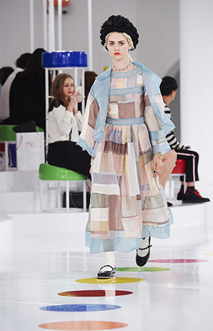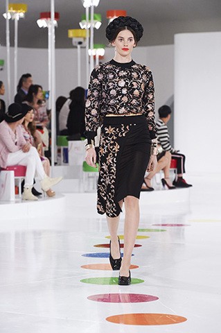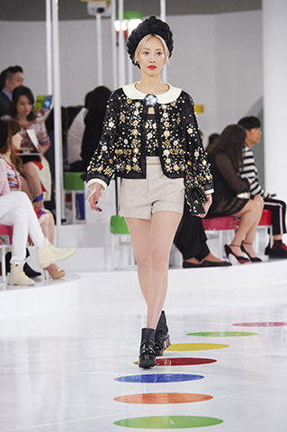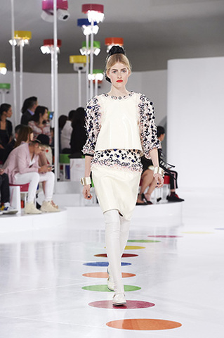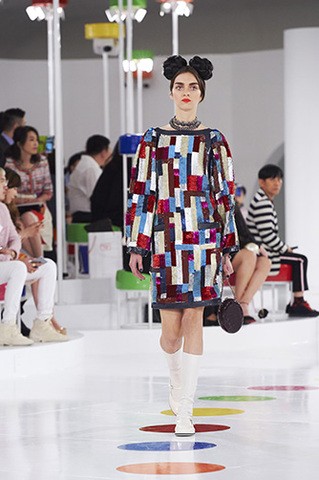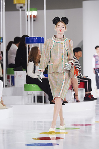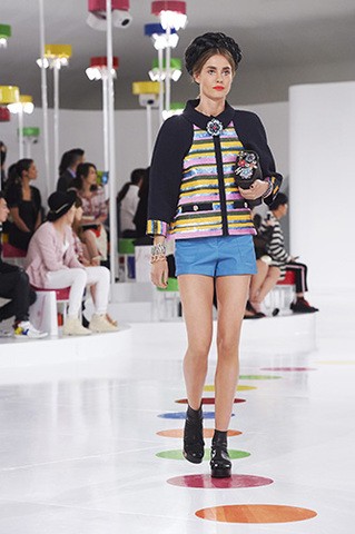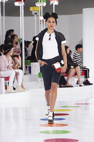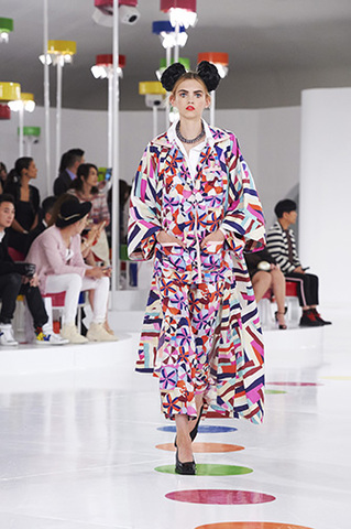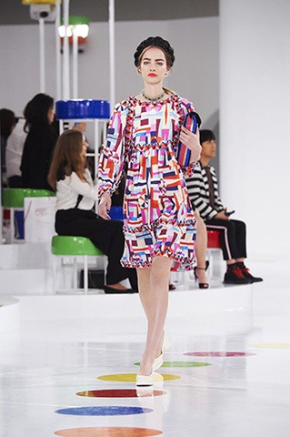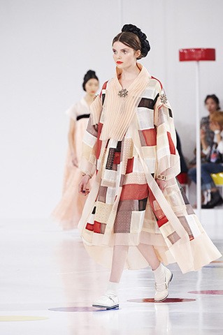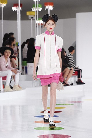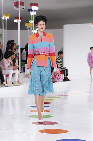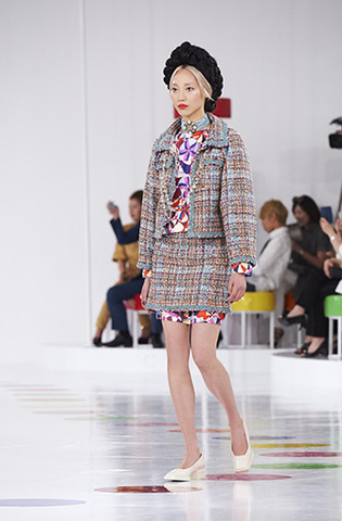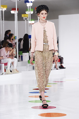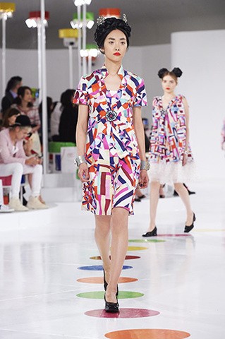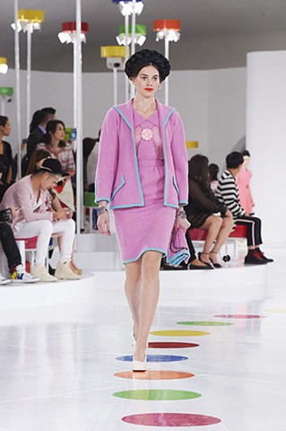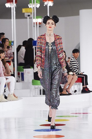 O criador alemão apostou numa explosão de cores vibrantes, como o fúcsia, o coral, o laranja, o violeta ou o verde menta, entre outras, os tweeds de assinatura da casa e outros algodões texturizados, bem como shantungs, linhos, organza ou rendas de seda ganham forma também em casacos de ombros redondos e mangas largas, colarinhos, calças largas e curtas ou apretadas na bainha, saias lápis ou direitas até ao joelho naquela que é a reinterpretação de Lagerfeld da sofisticação asiática, como explicou a marca.