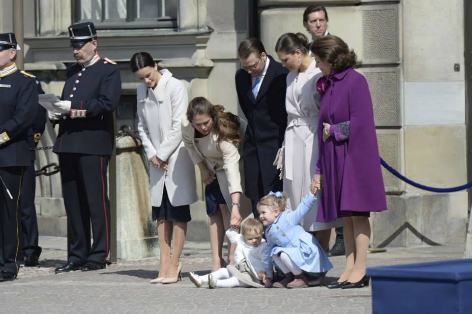 A filha da princesa Madalena, Leonore, foi a que se mostrou mais inquieta durante a cerimónia, onde o monarca recebeu as felicitações dos cidadãos. Nem mesmo ao colo da futura tia, a noiva do príncipe Carlos Filipe – Sofia Hellqvist -, a menina sossegou, acabando por sentar-se no chão ao lado da prima.